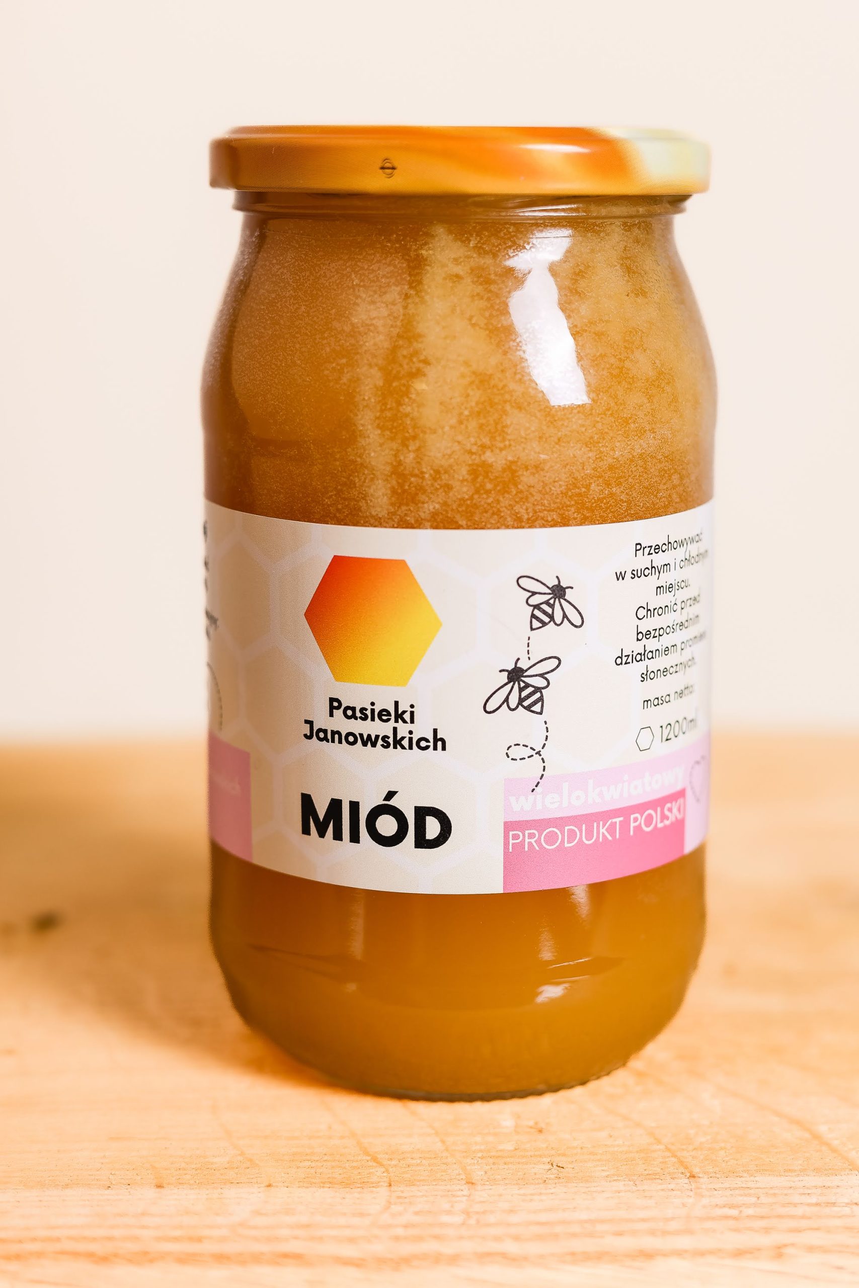 Dostępny w różnych pojemnościach, w tym 1,2 kg, 0,5 l i 0,33 l, ten pyszny miód to doskonały dodatek do codziennej diety.